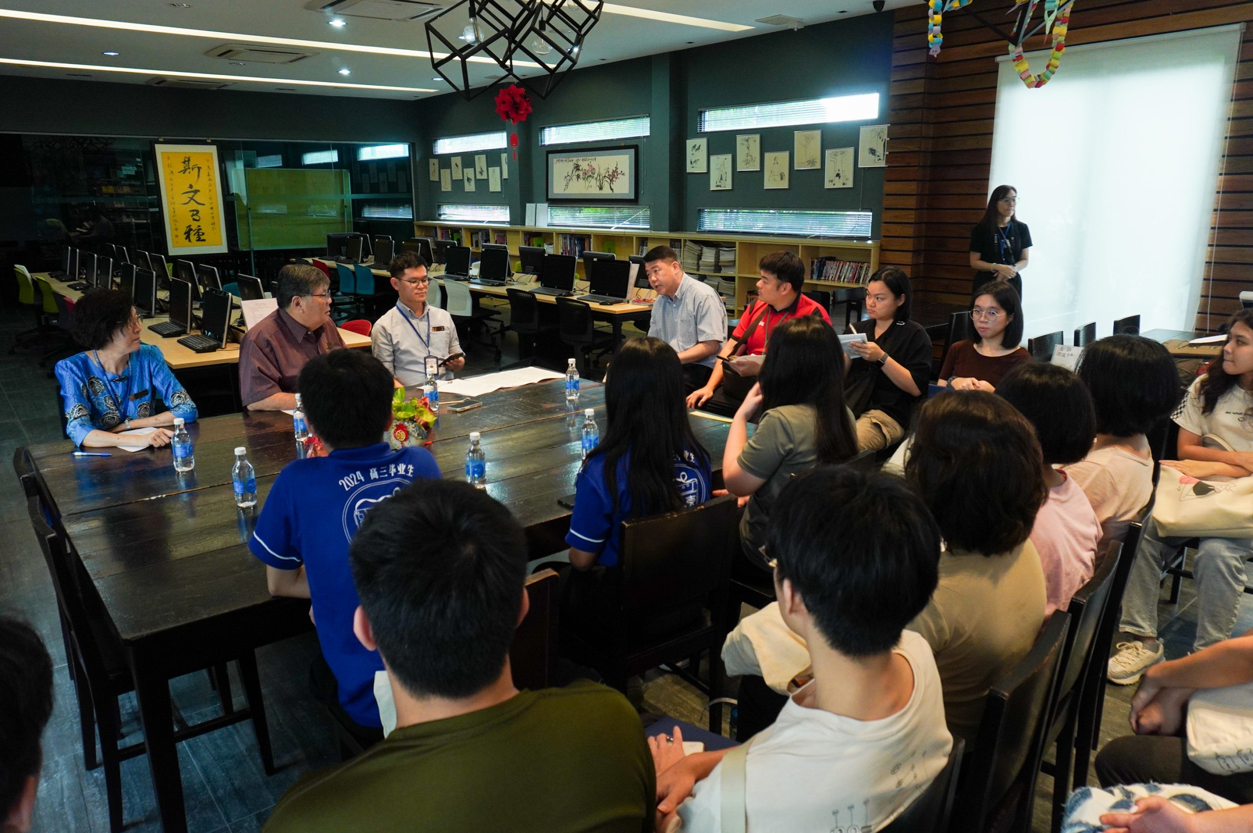 (2025年1月15日)马来西亚华文独中统一考试(统考)高初中成绩今日放榜,我校于多媒体室召开记者会,向社会大众汇报本校高中考生的优异表现,并鼓励学生继续发奋图强。本次记者会由校长蔡亲炀博士主持,副校长龙思岑女士与李家成先生、以及本届统考成绩优异的学生均到场见证这一重要时刻。