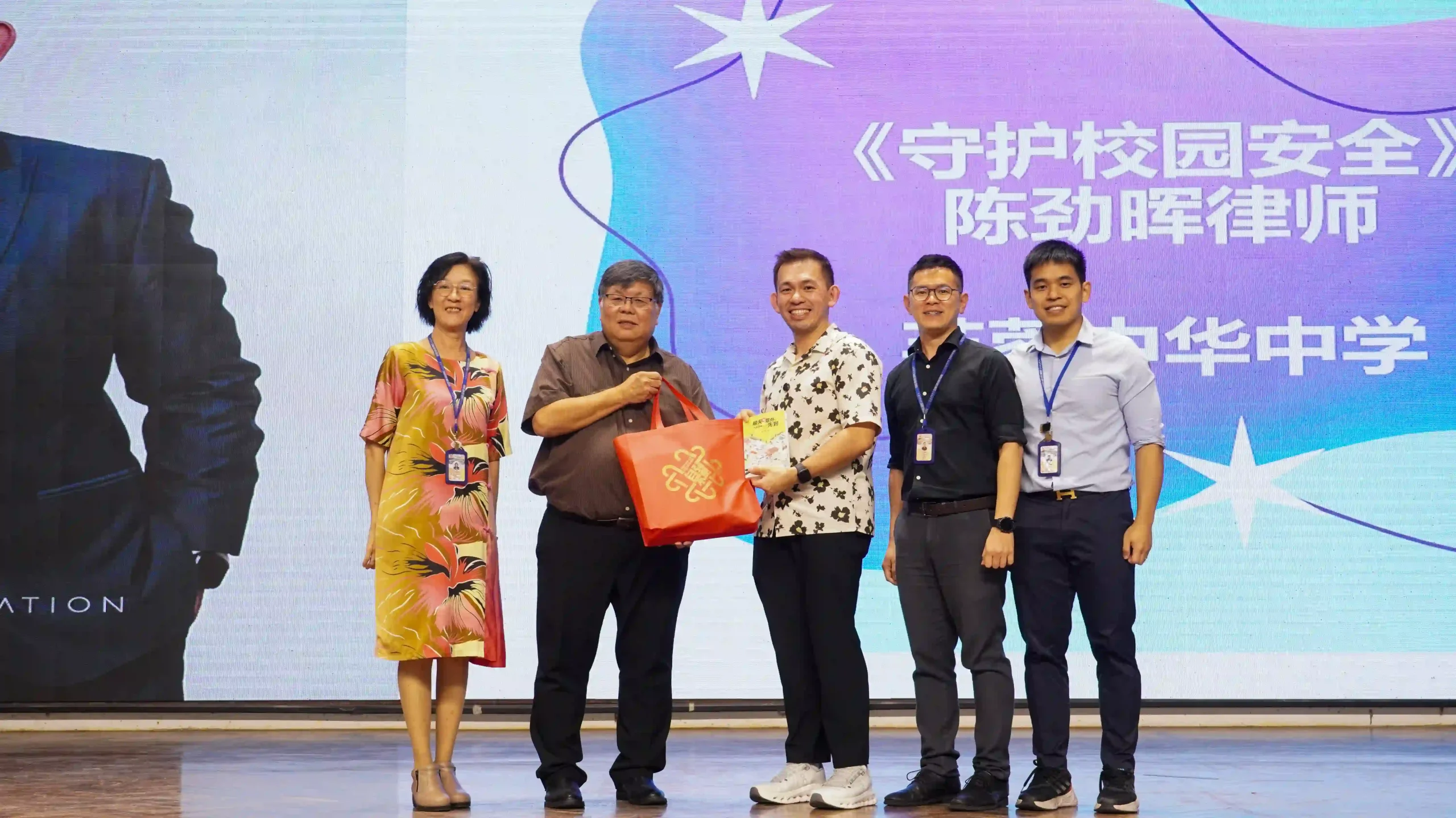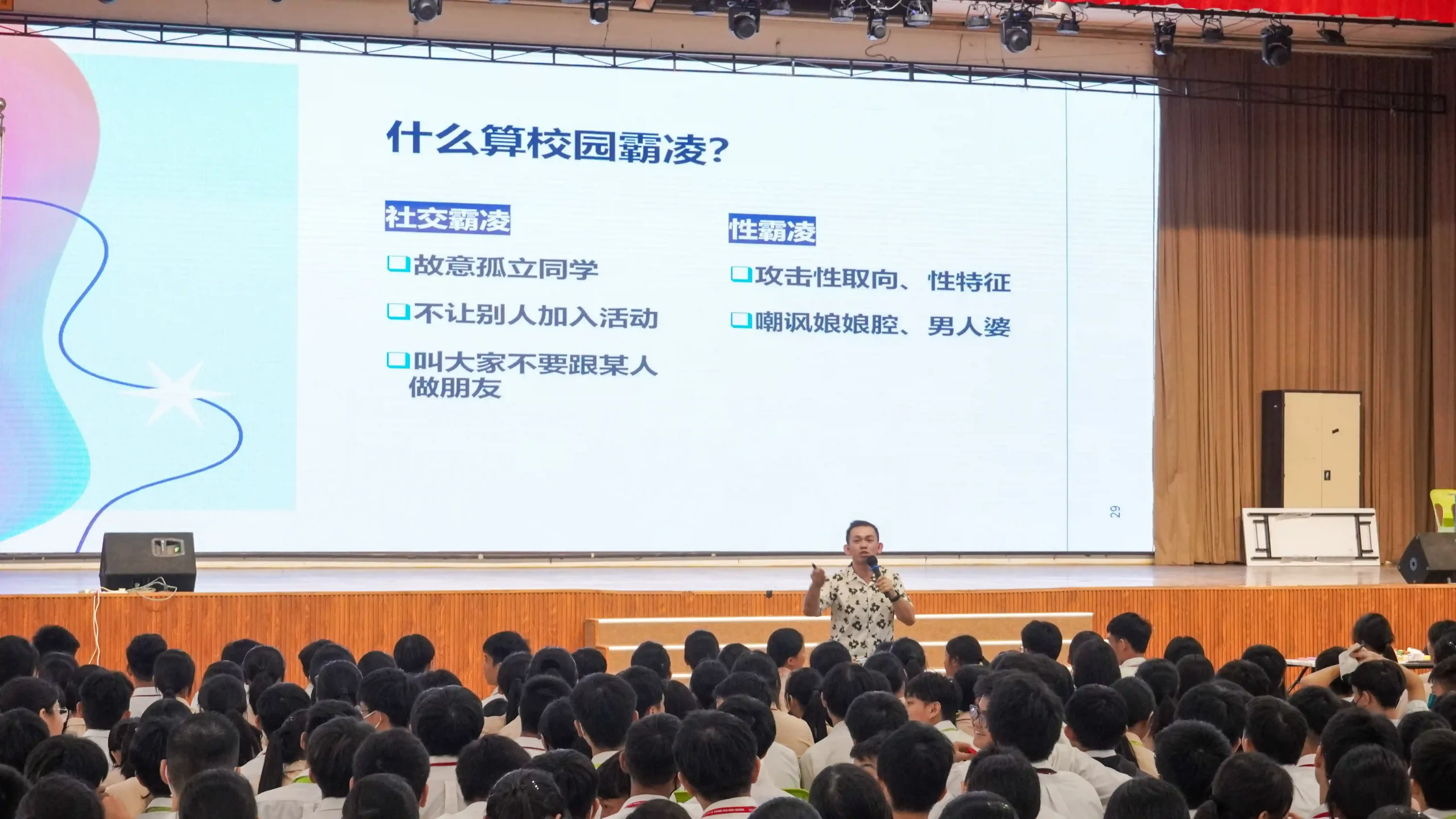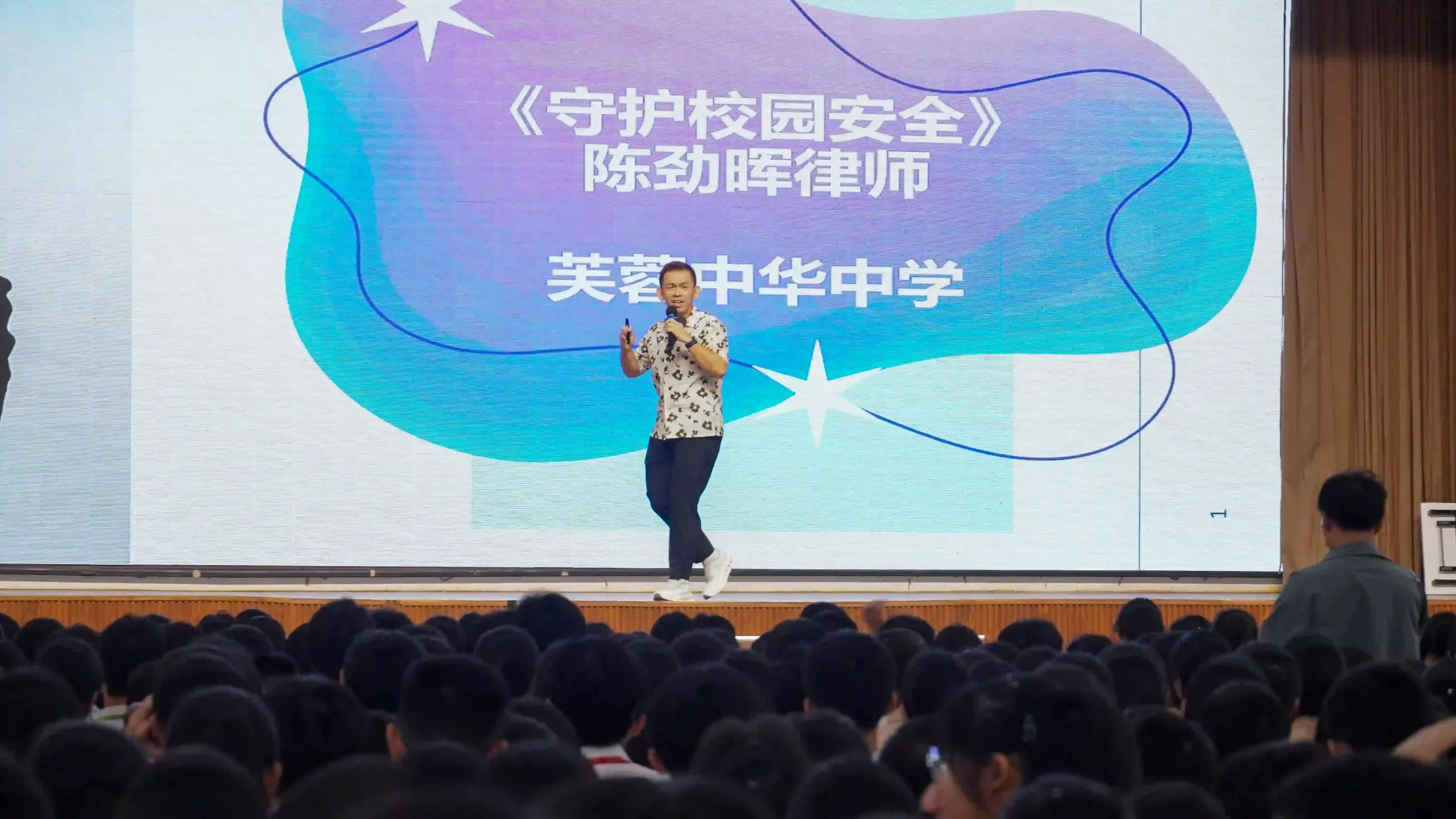 2025年10月9日(星期四),芙蓉中华中学训育处特邀校友——陈劲晖律师回校,分別为初中、高中同学带来一场“守护校园安全”的讲座。