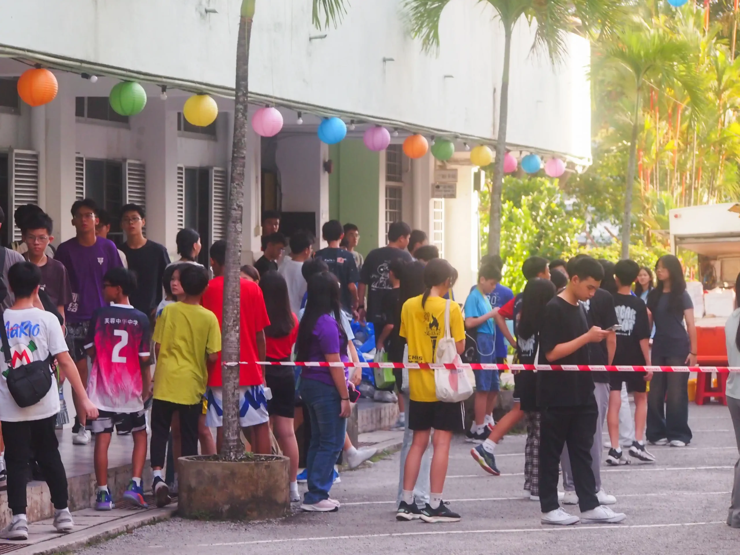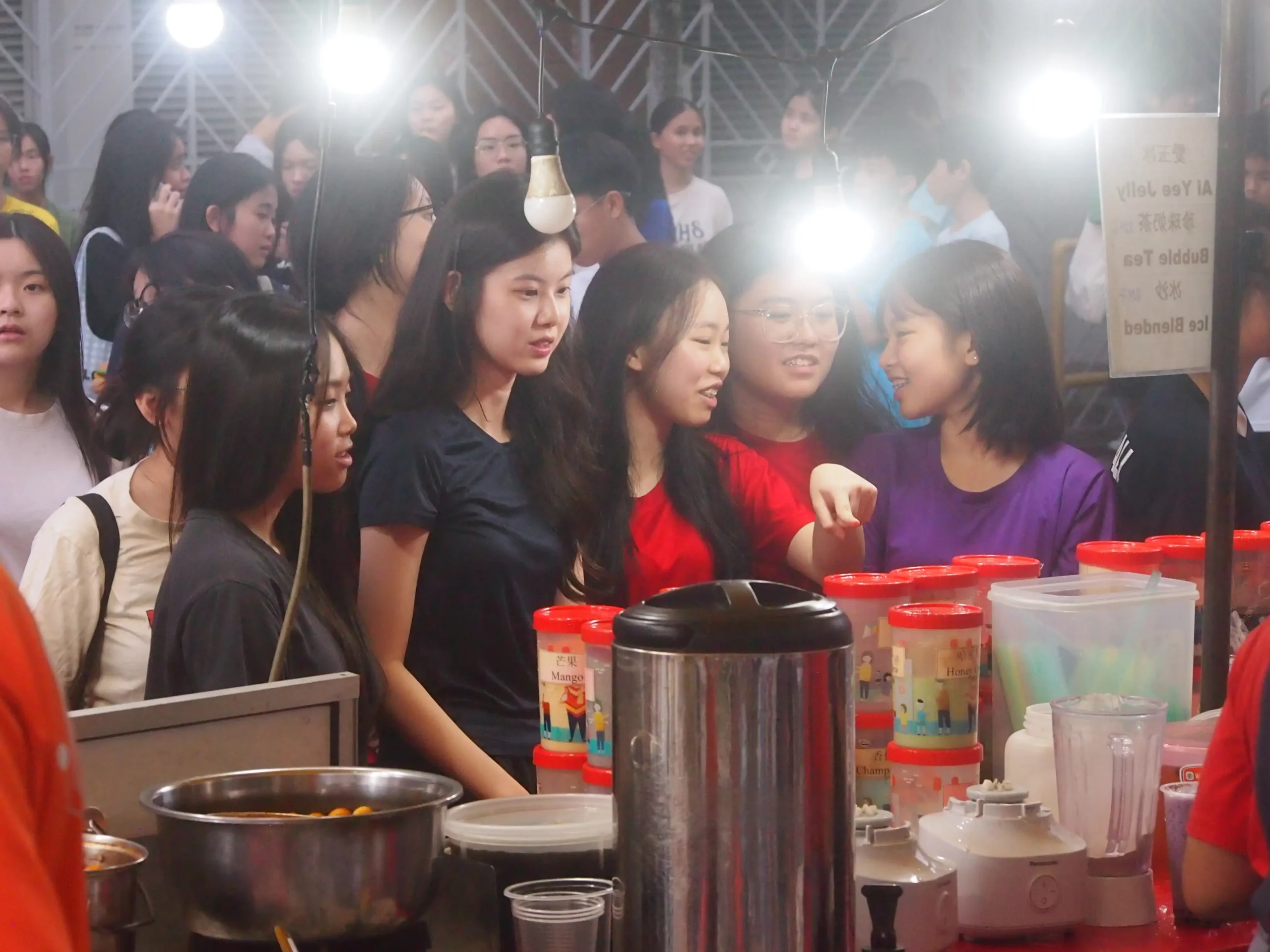 园游会当天,自治会全体同学群策群力,于宿舍楼层之间牵起了层层灯泡,挂上五色斑斓的灯笼,以绚烂的光影渲染出中秋氛围。现场亦邀请校外餐车,于宿舍贩售各类美食佳馐,如可丽饼、豆浆、炸鸡排,供宿舍生选购。