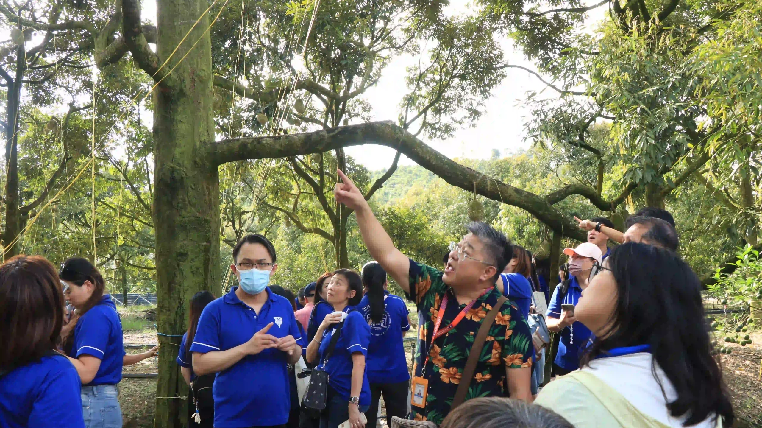 随后,卢宇廷亲自带领团队走入果园参访,分享多年经营果园的心得。他强调,果园经营除了要看天吃饭以外,还需要长期投入资源、心力、技术等,从灌溉、施肥到防治虫害,每一个环节都必须严谨把关,才能确保优质榴莲的收成。