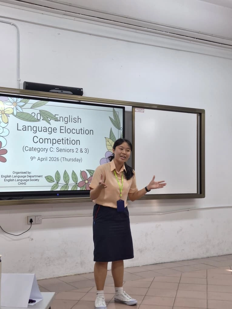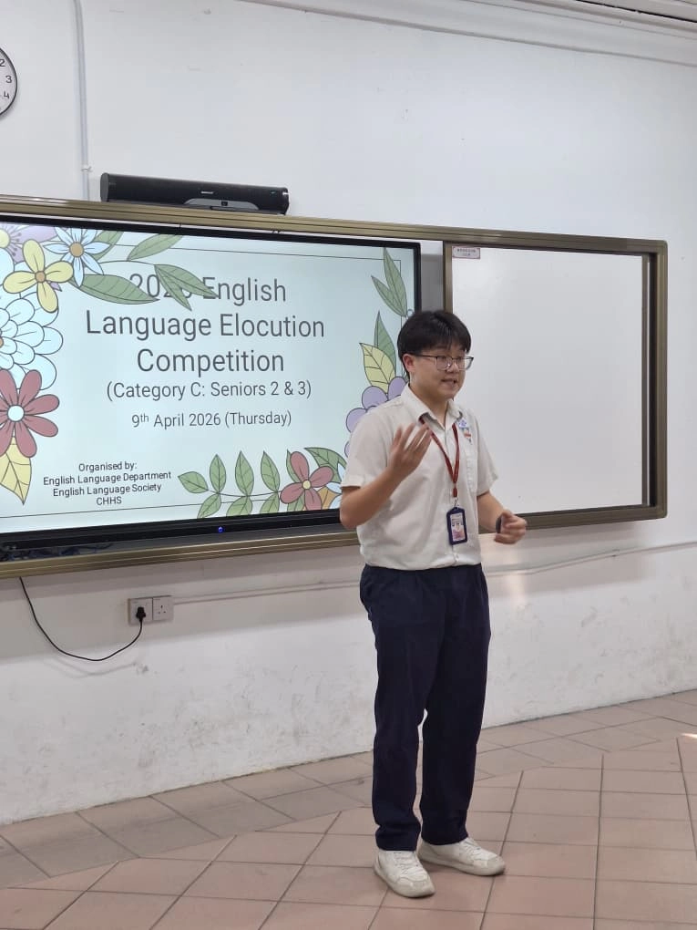 An Elocution Competition was organised by the English Language Department of CHHS on 9 April 2026 (Thursday) from 3:15 p.m. to 5:30 p.m. The event attracted enthusiastic participation from students ranging from Junior 1 to Senior 3, who delivered speeches on a variety of thought-provoking topics.