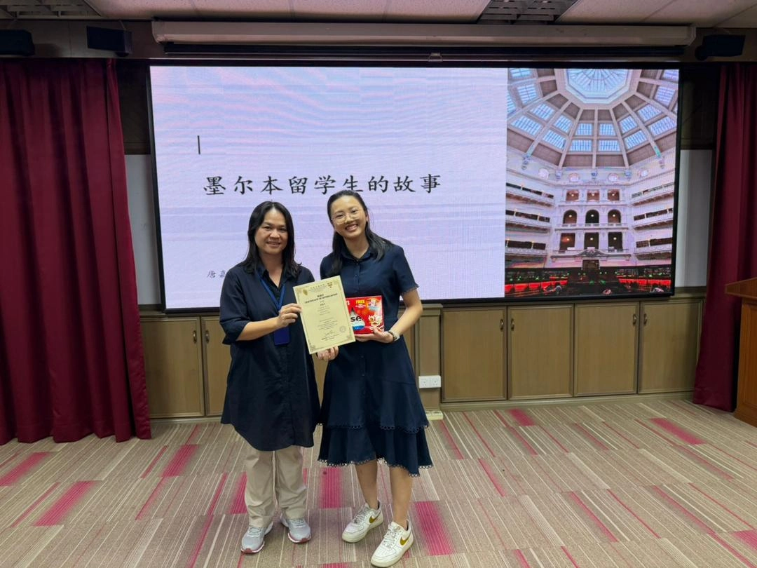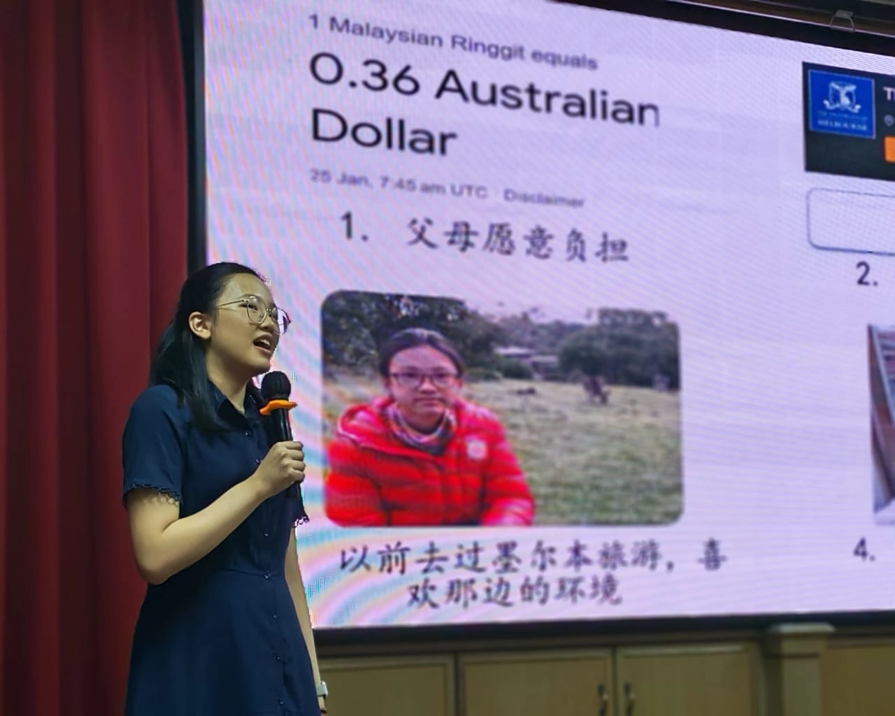随后,唐嘉怡则分享在澳洲的精彩多元的生活。她目前就读于澳洲墨尔本大学计算机系,为大三在读生。
