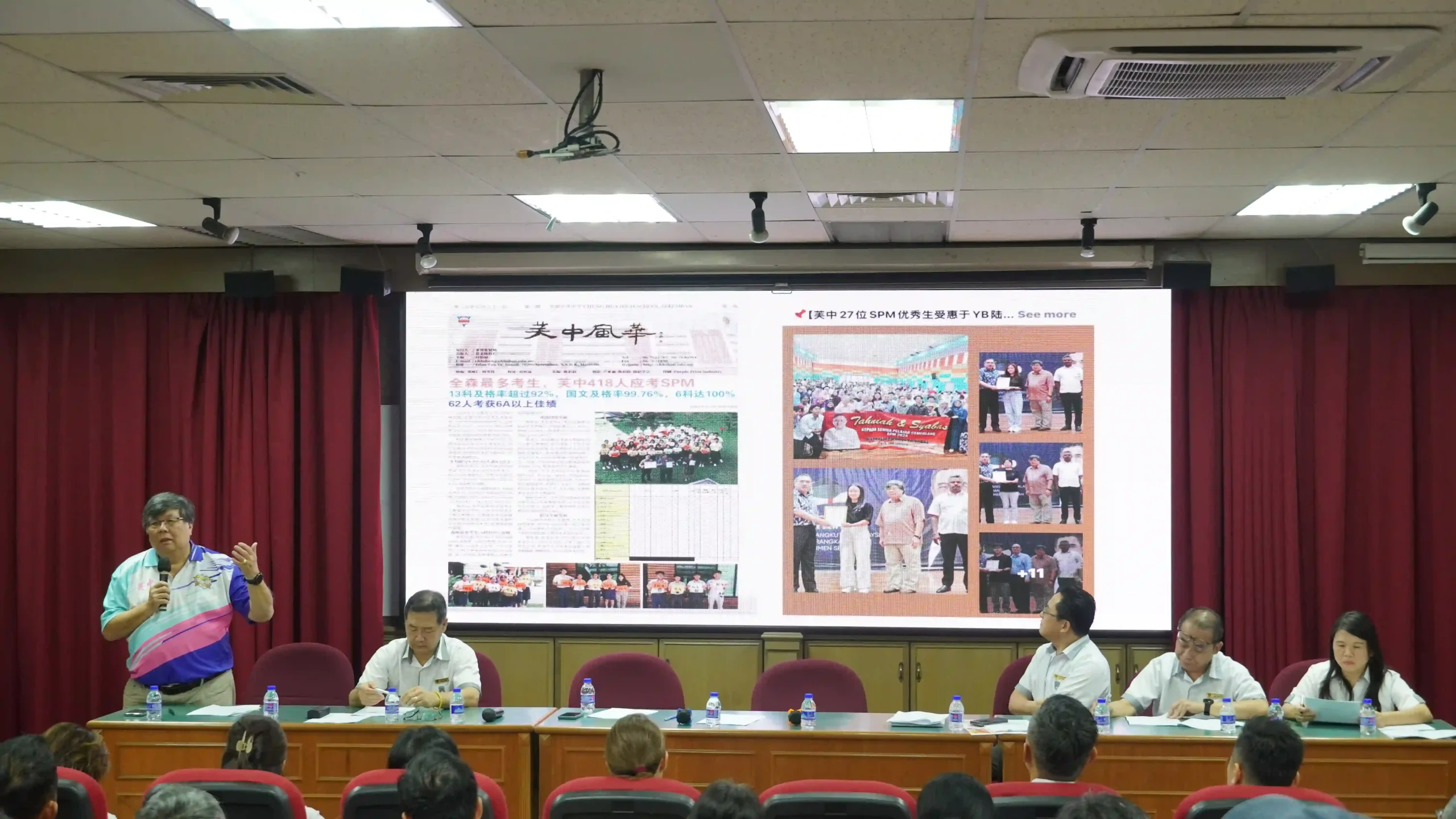 蔡亲炀汇报,近年来毕业生除了屡获各类奖学金,统考成绩亦维持稳定表现,获得国内外大学青睐;此外,芙中在政府考试方面表现同样稳健,尤其SPM国文科及格率几乎每年超过99%,期望能在即将来临的SPM成绩放榜日再创佳绩。